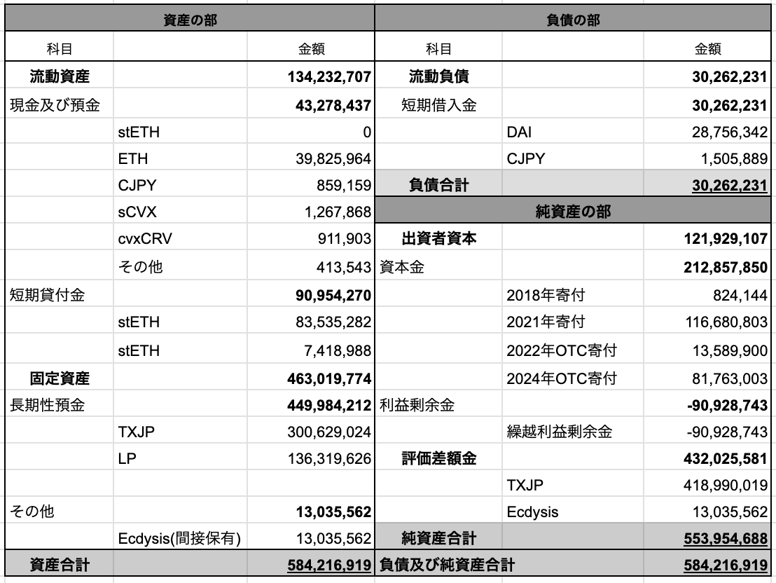 ・本記事で使用される貸借対照表、キャッシュフロー計算書は、当コミュニティの財務部が当コミュニティの財務報告に適合するように特別に作成したものであり、公認会計士及び監査法人による監査を受けたものではありません。